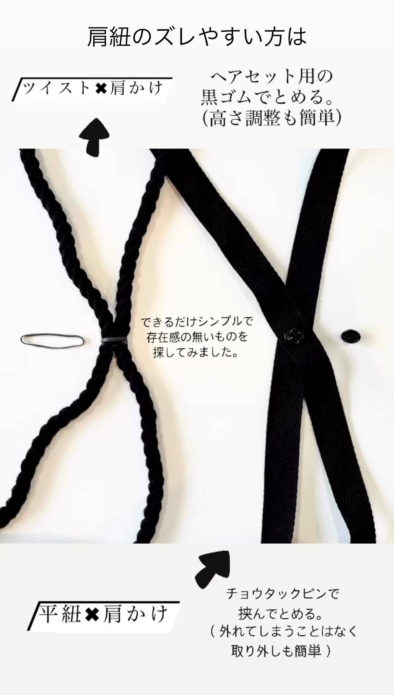 ★なで肩の方は首かけタイプか肩かけタイプですとツイスト紐が肩からずれにくくなります。