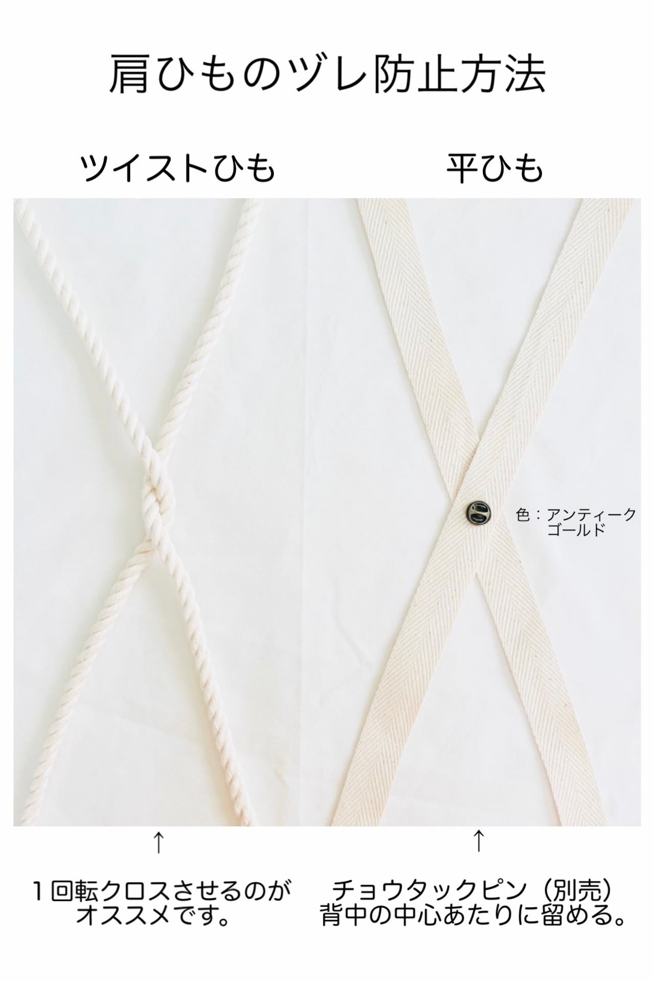 平ひも肩かけタイプを選ばれる際は、チョウタックピン(肩ズレ防止アイテム)の購入をお薦めしております。